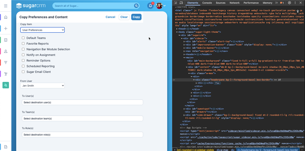 5. After removing that portion of the class, the UI will adjust and the options under Copy Content will become accessible. Result: