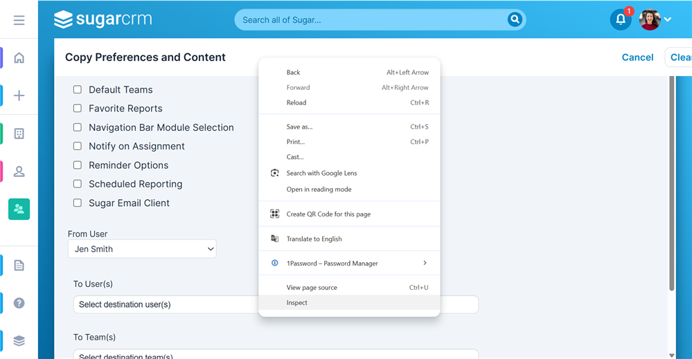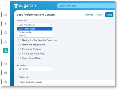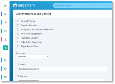 Workaround for User Management>Copy User Preferences and Content: