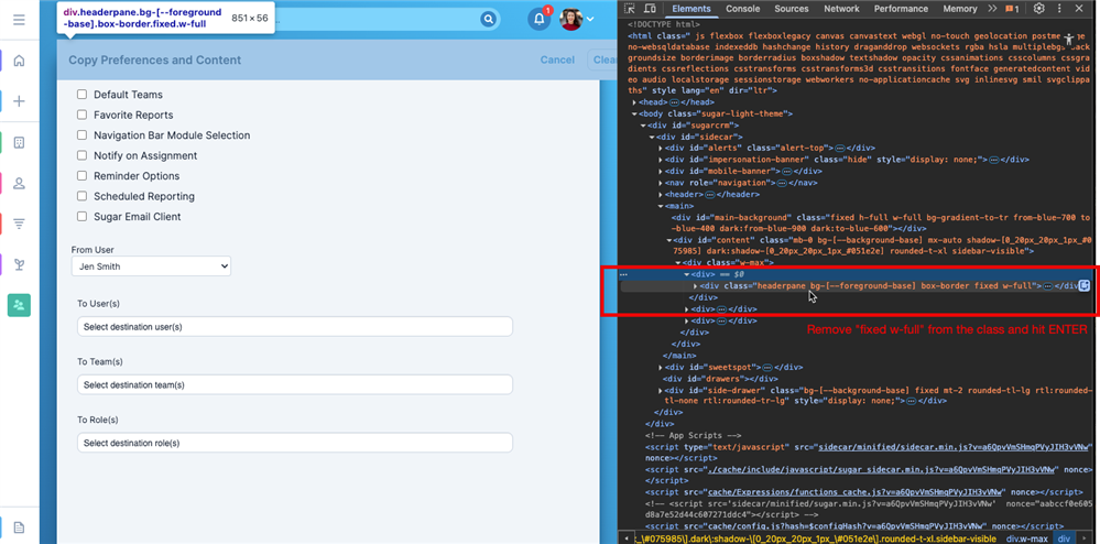 2. Double-click the <div> class named: headerpane bg-[--foreground-base] box-border fixed w-full