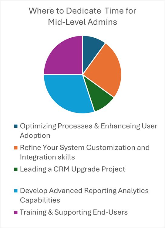 As a mid-level CRM Administrator, you're beyond the basics. Your goals should now push you towards optimizing CRM processes and enhancing user adoption. Focus on objectives that refine your system customization and integration skills. Consider leading a CRM upgrade project, developing advanced reporting and analytics capabilities, or training and supporting end-users to maximize CRM utilization. At this stage, your goals should reflect a balance between delivering tangible system improvements and enhancing your personal growth and influence within the organization.
