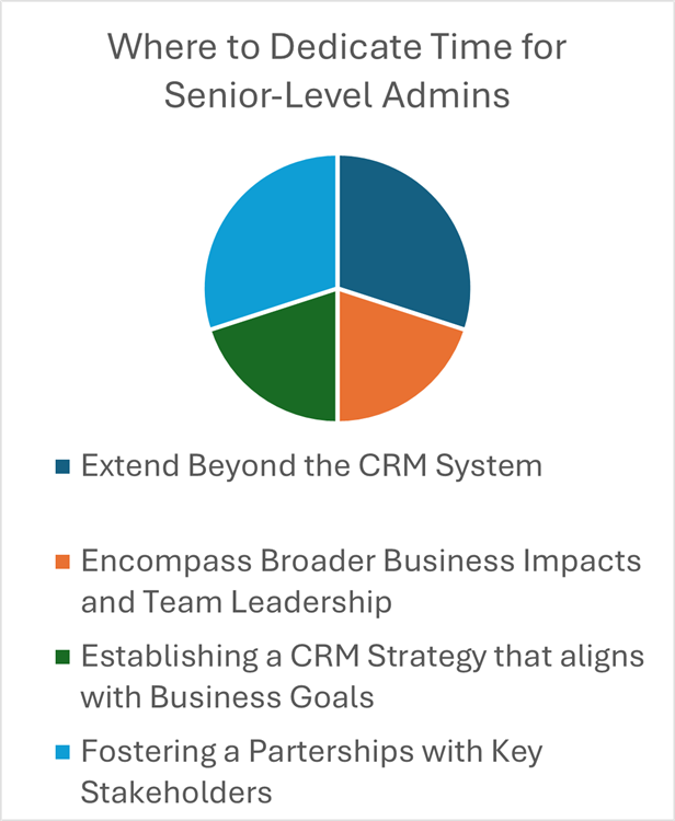 At the senior level, you are a strategic leader. Your goals should extend beyond the CRM system itself and encompass broader business impacts and team leadership. Aim for objectives like establishing a CRM strategy that aligns with business goals, fostering a culture of data-driven decision-making within your team, or building influential partnerships with key stakeholders. As a senior CRM Administrator, your goals should not only represent your expertise and vision but also your capacity to shape the organization’s CRM strategy and drive meaningful change.