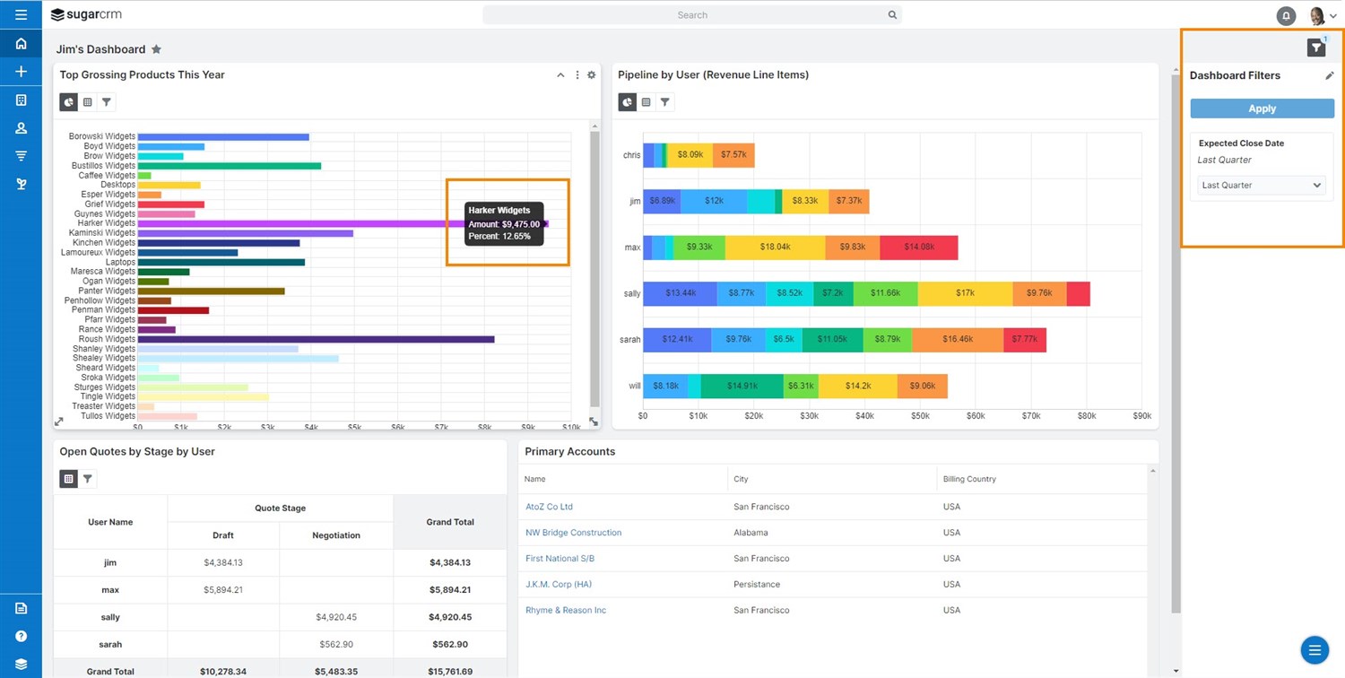 With the Q3 2023 release, we’ve introduced the dashboard filter, similar to the Reports Viewer filter, enabling you to filter multiple dashlets simultaneously.