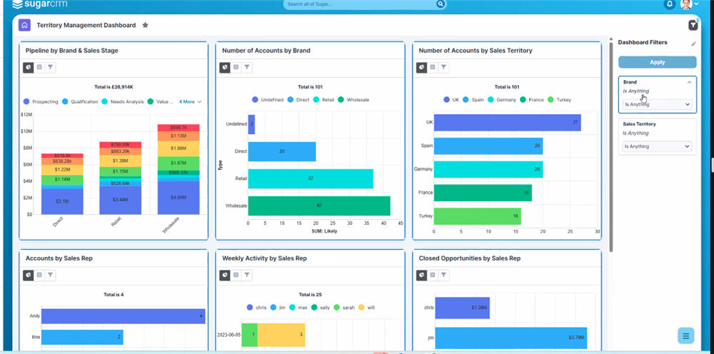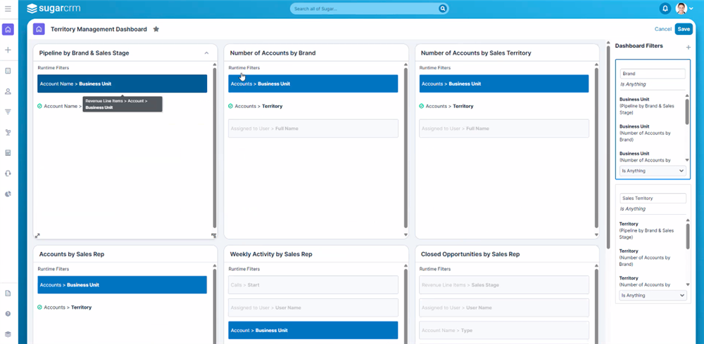 Andy walked us through some powerful ways to take advantage of report filters within dashboards and how they can simplify workflows and improve adoption across teams. These filters can help users quickly toggle between views, focusing on territories, teams, and more, without needing to build separate dashboards for each variation. To use this feature, configure “Run Time Filters” on your reports and then add those reports to your dashboard.