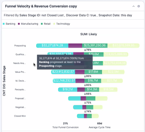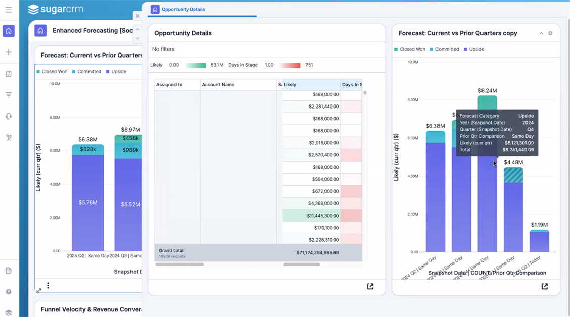 Lydia then took us deeper into Enhanced Forecasting/Service Insights (Sugar Discover), which is especially useful for teams looking to analyze how data has changed over time. Traditional reporting in Sugar (Sell, Serve, and Enterprise) shows what your data looks like today, while Enhanced Forecasting in Discover gives you historical context, helping you track how your pipeline has evolved over time, such as comparing pipeline values by week, quarter, or other time intervals.